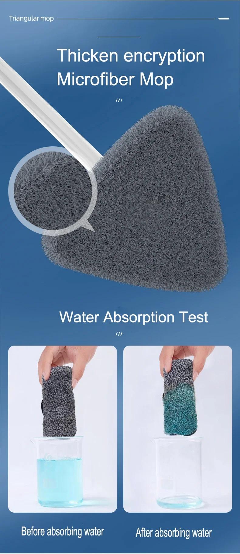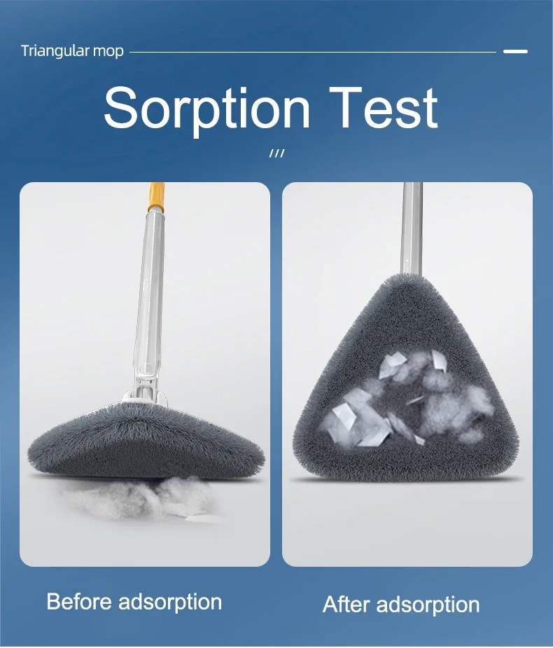 [Automatic Water Squeezing] Triangular mop has push and pull automatic water squeezing function. With a gentle push and pull, it will squeeze the water out of the mop head, drying quickly, saving time and labor.
