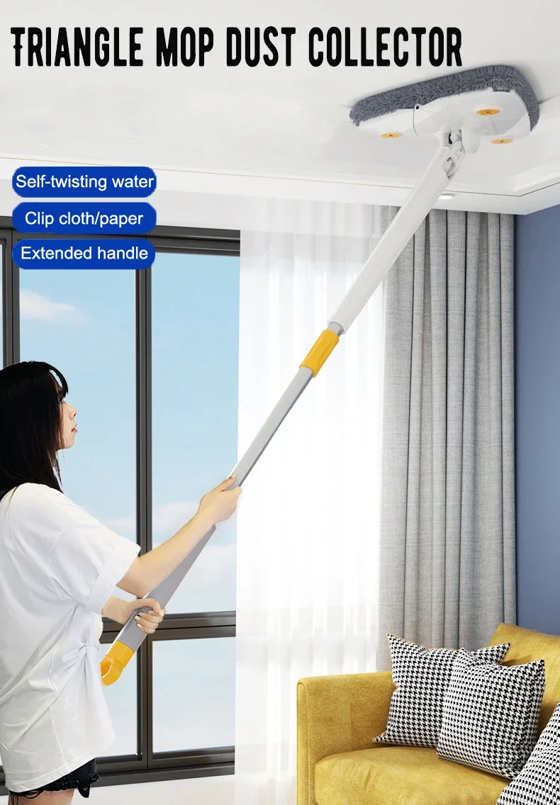 Self-cleaning Triangle 360 Cleaning Mop Telescopic Household Ceiling Cleaning Brush Tool Self-draining To Clean Tiles and Walls